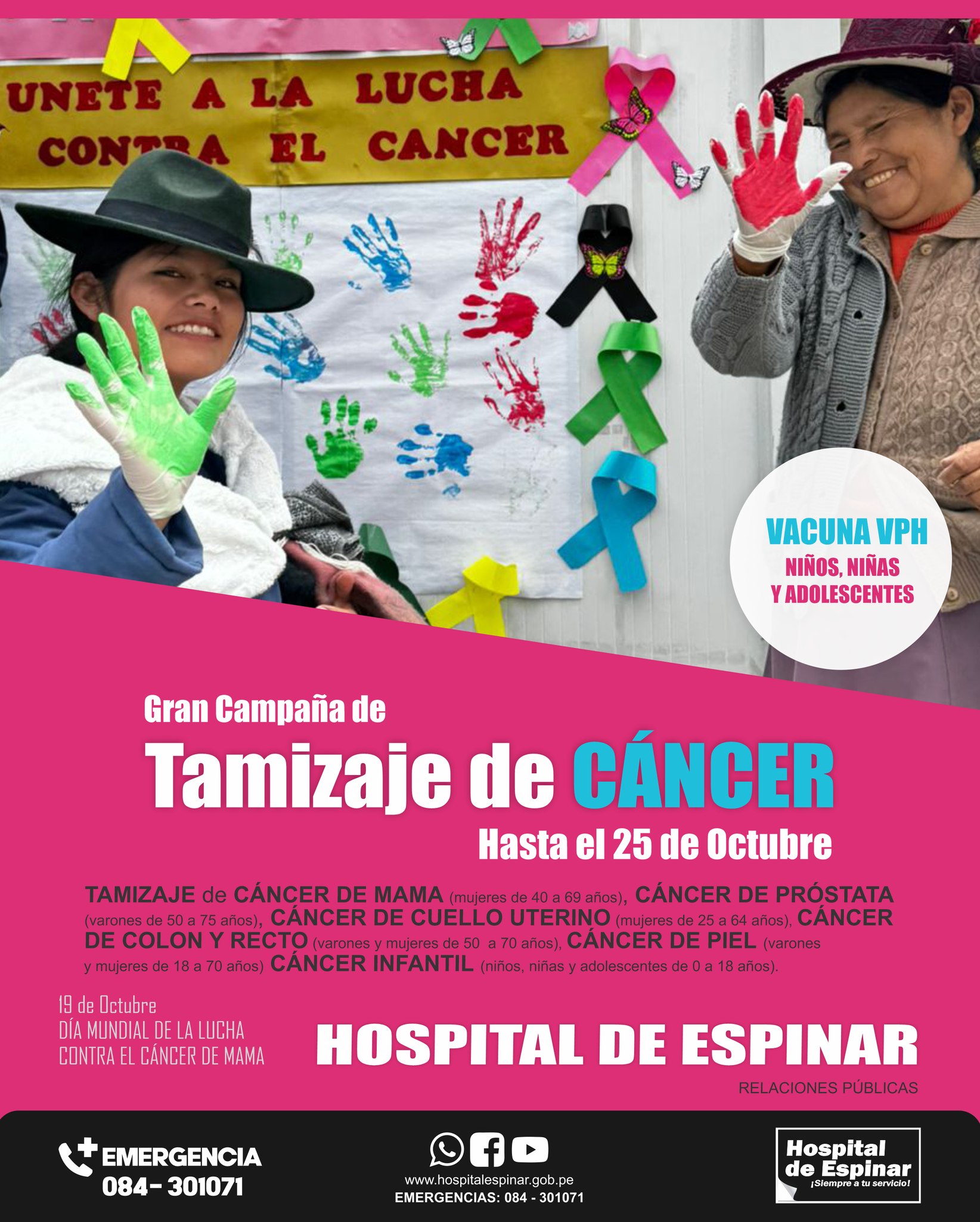 HOSPITAL DE ESPINAR VIENE IMPULSANDO LA REALIZACIÓN DE LA GRAN CAMPAÑA DE TAMIZAJE DE CÁNCER HASTA EL PRÓXIMO 25 DE OCTUBRE 21/10/2025