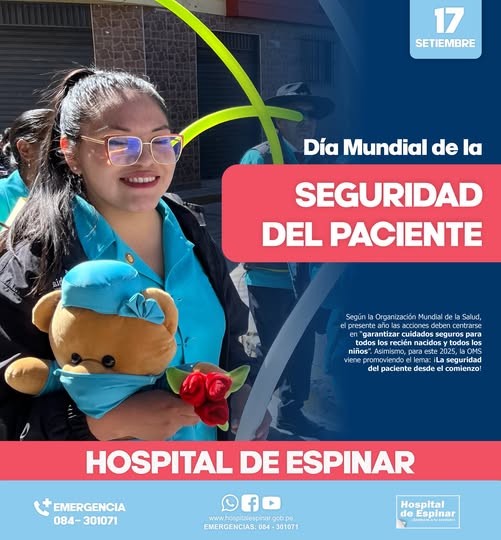 Al conmemorarse hoy el “DÍA MUNDIAL DE LA SEGURIDAD DEL PACIENTE”, el Hospital de Espinar viene llevando a cabo con éxito las actividades programadas con motivo de esta importante efeméride. Por ejemplo; el día de ayer, el personal participó activamente de la elaboración de periódicos murales, siendo que al momento de la presentación realizaron una breve pero muy sustanciosa exposición respecto al significado y las acciones que se deben adoptar para garantizar una atención #segura a los pacientes. Además de esta muy significativa actividad, también se programó un vistoso concurso de videos a través de la plataforma de tik tok y el desarrollo de cursos de capacitación en #incidentes, eventos adversos, eventos centinela, #higiene de manos y seguridad del paciente.